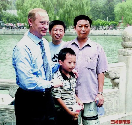 当时,普京越过执勤的武警,与一位叫彭湃的中国小男孩互动,这一温馨的画面被摄影记者拍下。据了解,这名男孩来自湖南岳阳。